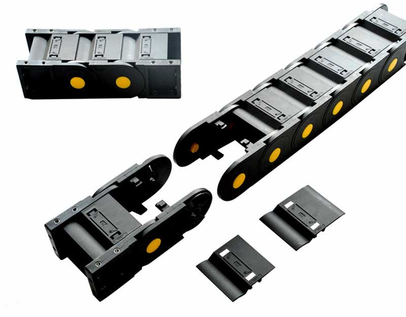 1.可將拖鏈內外側擋片打開方便安裝、檢查或更換線纜;