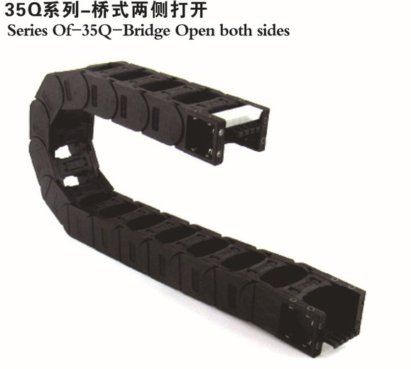 尼龍拖鏈的安裝有兩個(gè)步驟,第一:把需要內(nèi)置的電線電纜放入拖鏈內(nèi),第二:把拖鏈固定在設(shè)備上面。